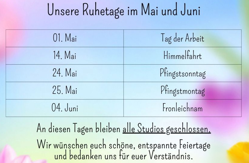 Wenn du dich für die Aktion bzw. eine Mitgliedschaft bei uns entscheidest, hast du die ersten 14 Tage Zeit, dich von unserem Angebot zu überzeugen. Wenn es Dir bei uns gefällt läuft deine Mitgliedschaft einfach zum ausgewählten Wochenpreis weiter oder Du machst von deinem Rücktrittsrecht gebrauch.